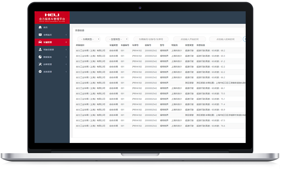 所屬組織車輛實時定位跟蹤,監控車輛的實時位置信息、車輛開關機狀態、車速、定位狀態、故障告警等。隨時了解車輛的行蹤,全面掌握車隊的運行狀態。